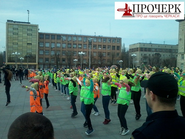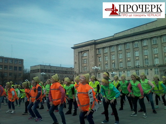 Сьогодні на Соборній площі черкащани долучились до Всеукраїнського флешмобу за безпеку дорожнього руху.
