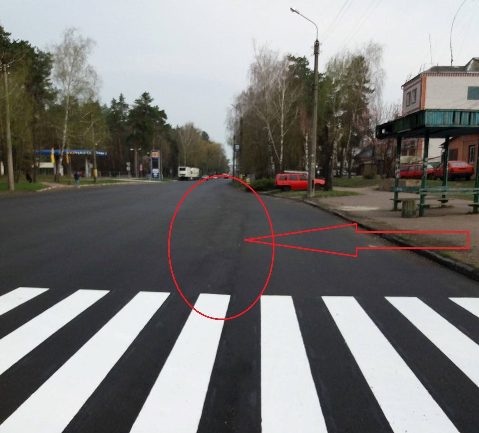 «Без будівельного рівня видно нерівний асфальт, маються пагорби. Рівня схилу не дотримано. Вода залишатиметься і розмиватиме покриття. Через рік знову перероблятимемо дорогу. Для тих, хто прокоментує: та там ще верхній шар покладуть. Не покладуть. Бо розмітку вже нанесли».