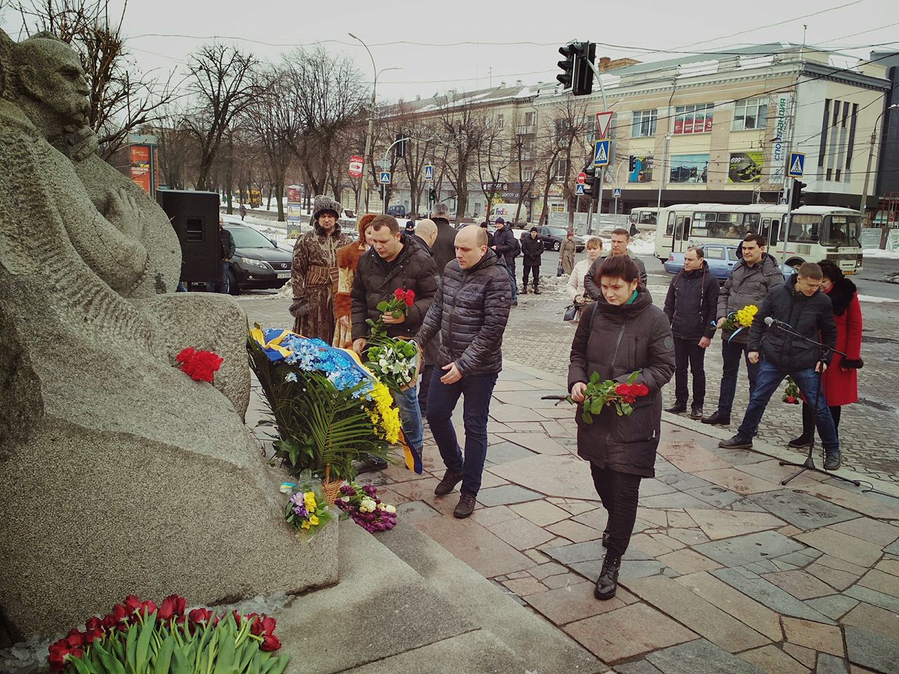 Сьогодні в річницю від дня народження Тараса Григоровича Шевченка, українського письменника, поета, художника, у Черкасах відбулися покладання квітів до пам’ятнику Кобзарю на Театральній площі.