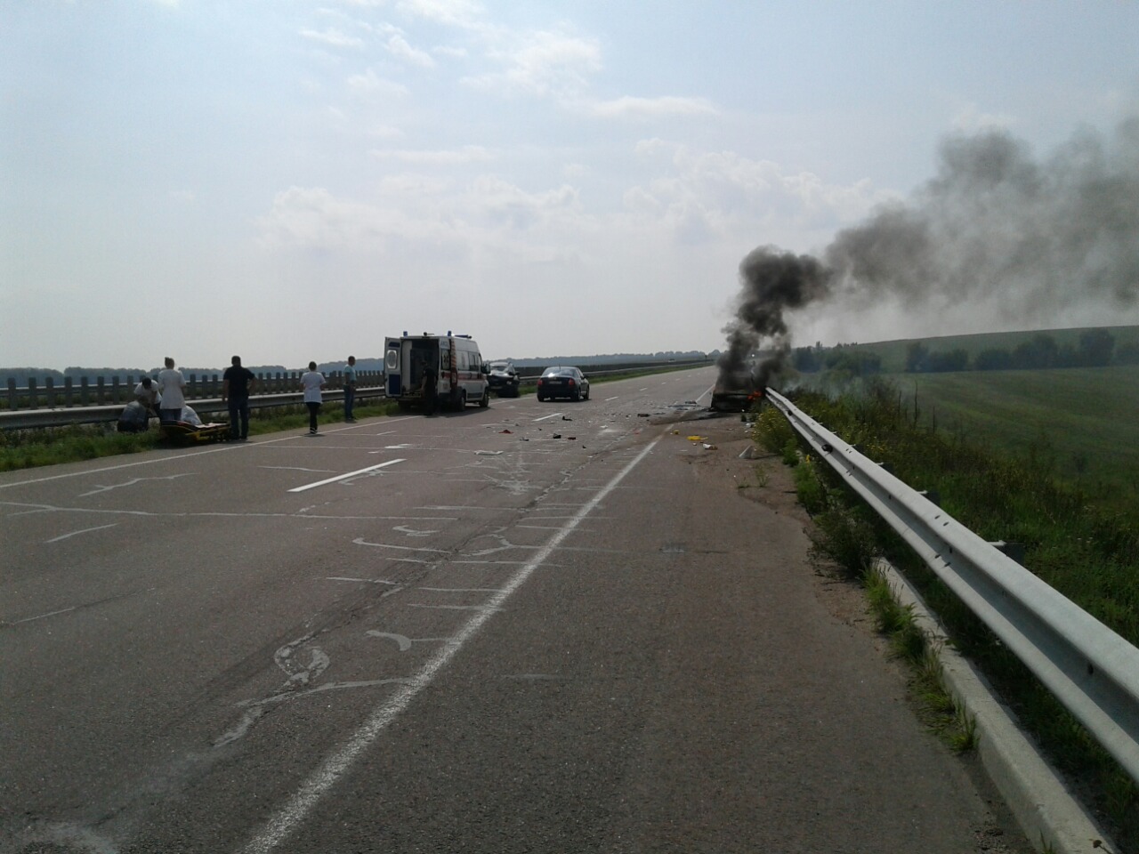 Внаслідок зіткнення автомобіля «Таврія» від удару загорівся.