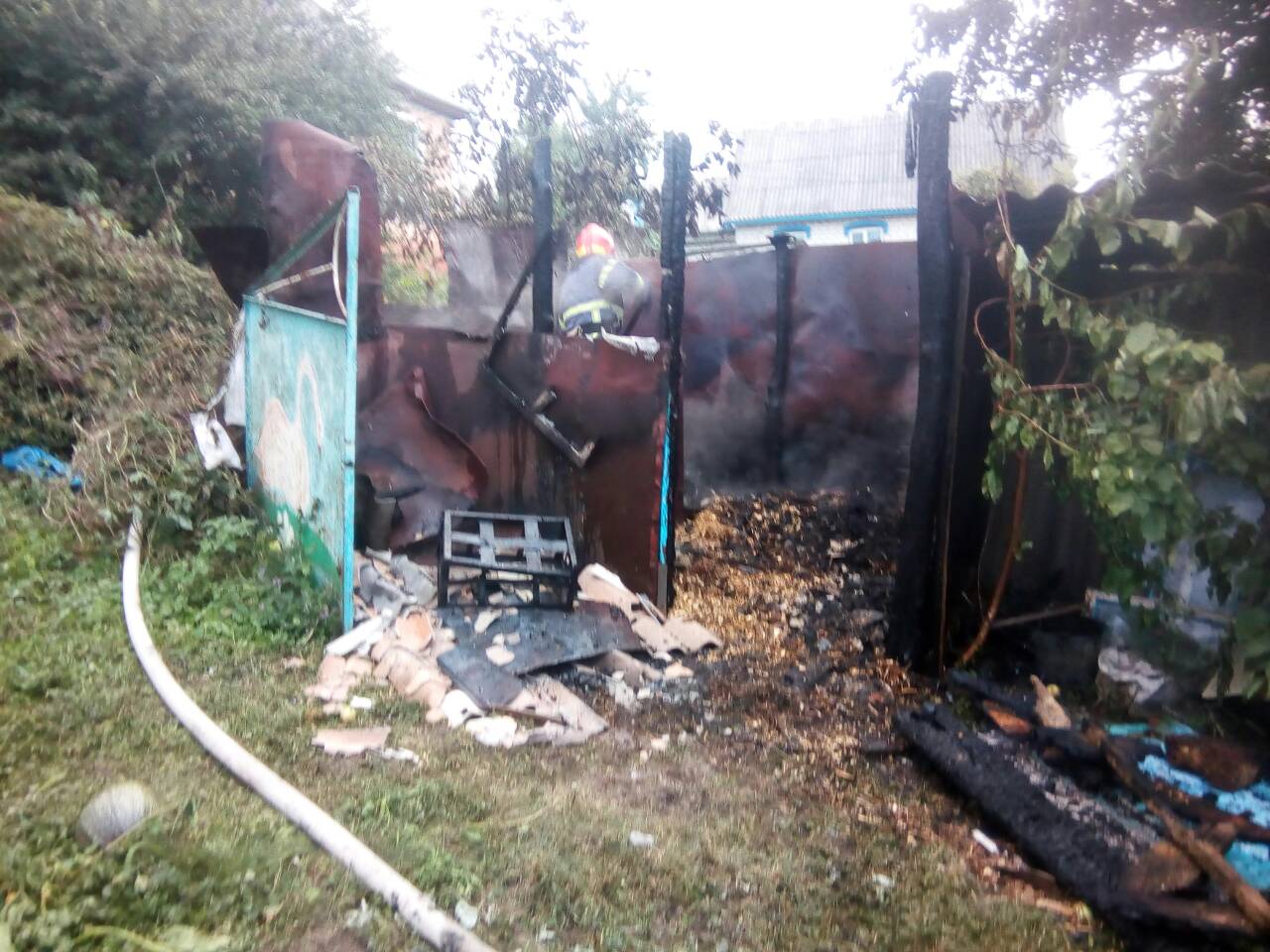 Пожежа, в результаті якої вогонь знищив надвірну споруду, була ліквідована силами чергового караулу 22-ї Державної пожежно-рятувальної частини.