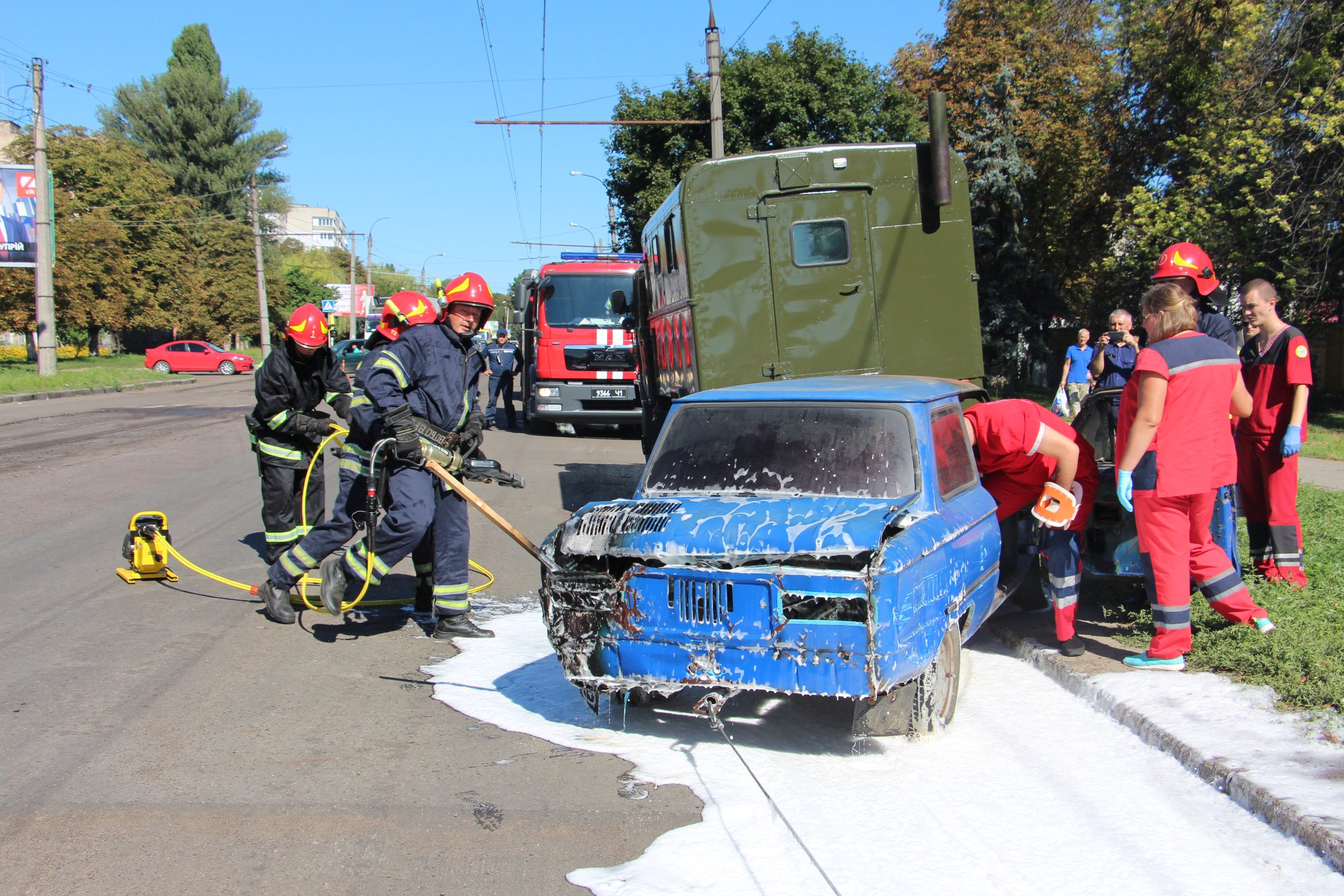 Кожен з підрозділів, що брали участь у навчаннях, відпрацював дії з розмиву пального, яке вилилося із пошкодженої паливної системи, проведення пінної атаки, та бойове розгортання і рятувальні роботи з евакуації потерпілих із пошкоджених салонів.