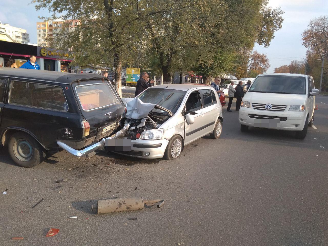 Водій авто Volkswagen T5 при здійсненні маневру перелаштування з середнього ряду на крайній правий не переконався в безпеці та допустив зіткнення з авто Hyundai cetz, який рухався в правій смузі попутного напрямку, через що останнього відкинуло на припарковане авто ГАЗ-2402.