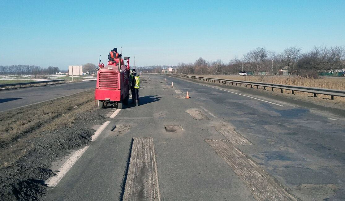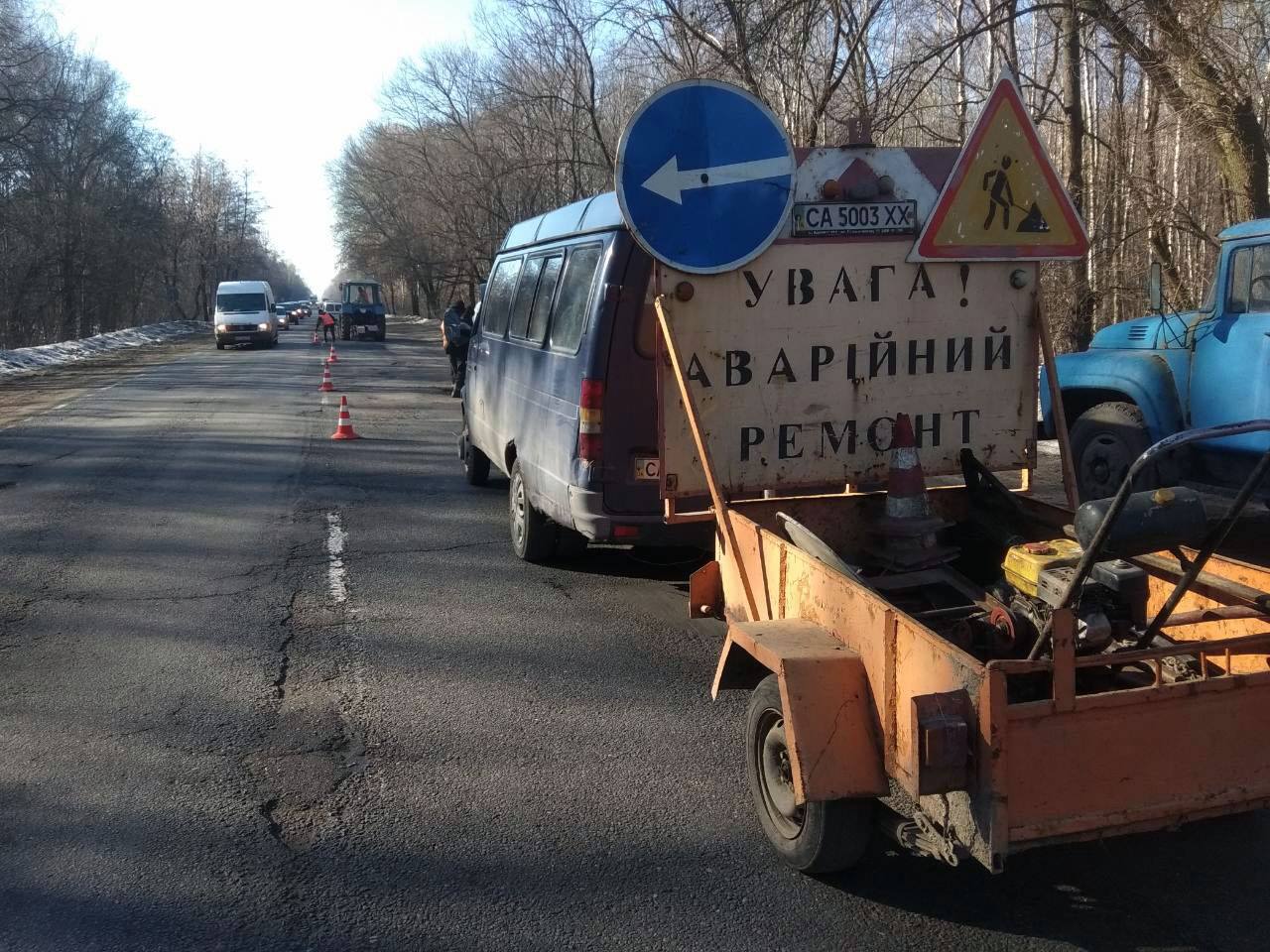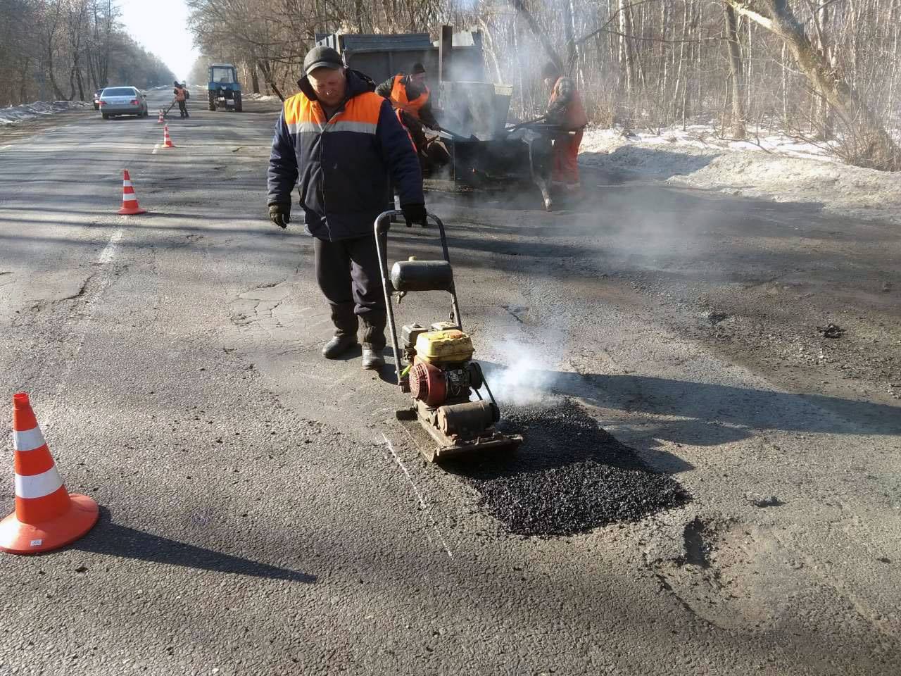 На дорогах Черкаській області проводяться роботи з аварійного ямкового ремонту холодним асфальтобетоном та методом просочення.