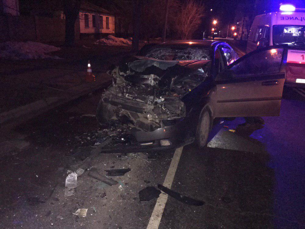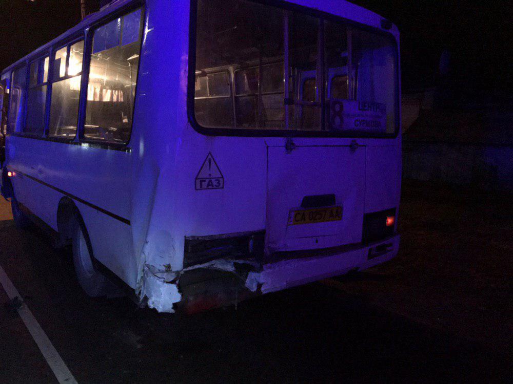 Водій автомобіля «Шевроле Лачетті» скоїв наїзд на припаркований ПАЗ (маршрутка № 8). Травми отримали водій, 1988 року народження, та пасажирка, 1961 року народження. Водій автобуса не постраждав.