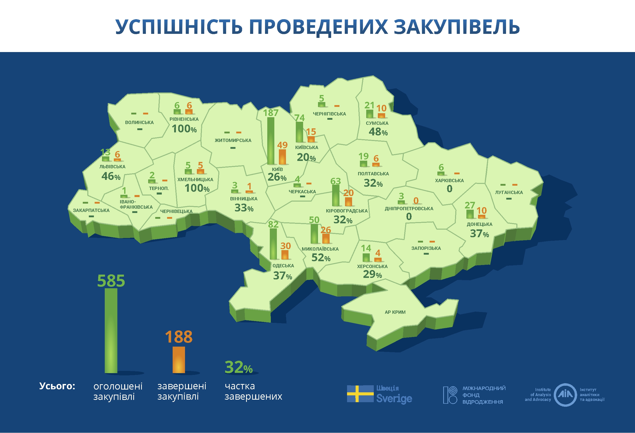 – У період з жовтня 2017 по жовтень 2018 в Україні уклали 188 енергосервісних угод вартістю 186,4 млн грн. Важливо, що майже половина енергосервісних закупівель неуспішні. Причини: відсутність на ринку України достатньої кількості ЕСКО-компаній, помилки замовників та учасників торгів, залежність від місцевої влади при підписанні договору, – пояснює Олександр Довгошей, консультант із аналізу закупівель ІАА.