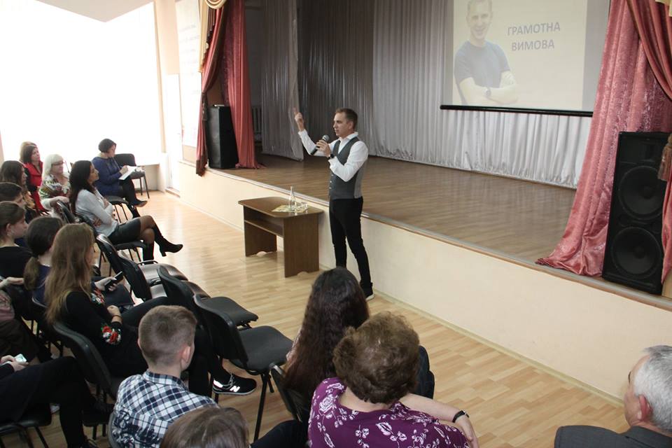 Послухати науковця та отримати від нього кілька уроків з української завітали учні 9, 10 та 11 класів, а також вчителі навчального закладу. Олександр Авраменко готував гімназистів до складання ЗНО та розповідав про мовні тонкощі, які їм в цьому допоможуть. Лекція відбувалася в форматі живого діалогу – гість ставив запитання учням, просив прочитати слова чи пройти тести, а потім пояснював матеріал.