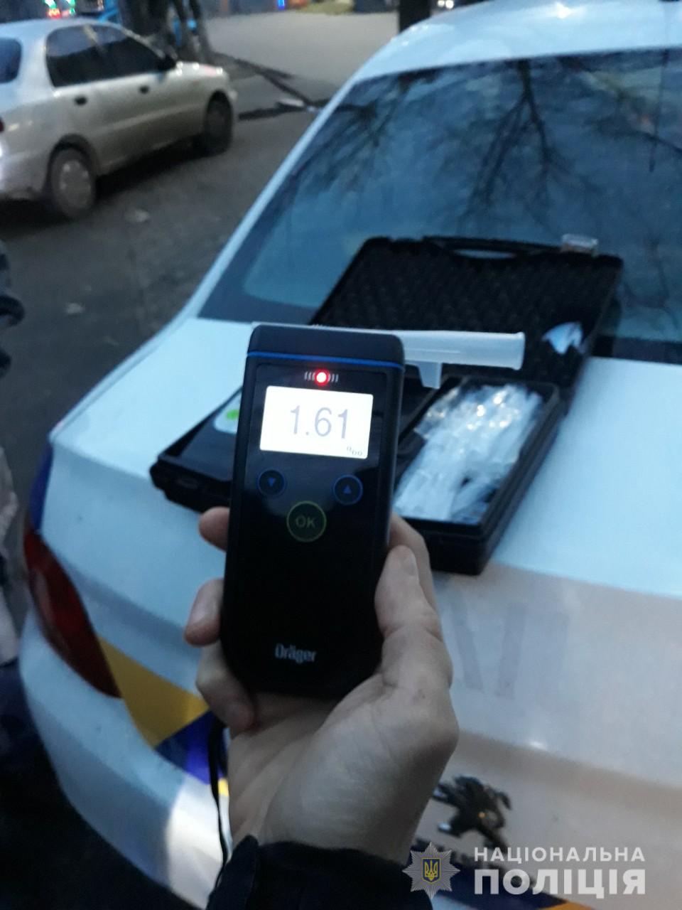 Відповідно до даної ситуації, правоохоронці зупинили автомобіль. Здійснюючи огляд авто та спілкування з правопорушником, поліцейські охорони помітили, що водій перебуває в явно вираженому стані алкогольного сп’яніння, має порушення координації рухів та мовлення. Допустима норма алкоголю в крові була перевищена у 8 разів.