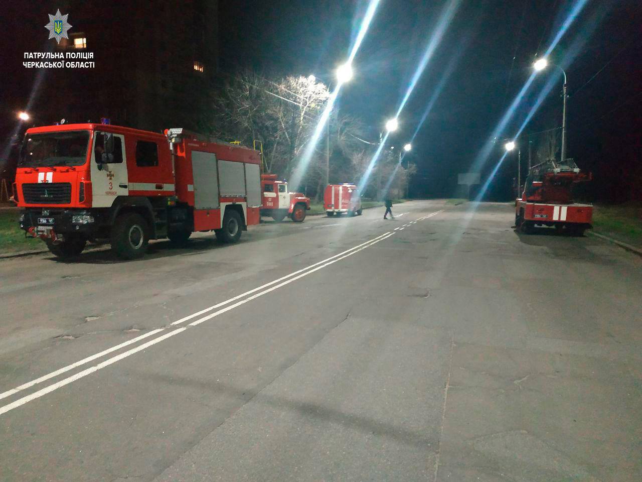 У роботі були задіяні усі спецсили: патрульна поліція, працівники ДСНС та ГУНП в Черкаській області, вибухотехнічної служби, кінологічного центру, медики. При огляді житлового будинку і прилеглої території жодних вибухових речовин та інших підозрілих предметів не знайшли.
