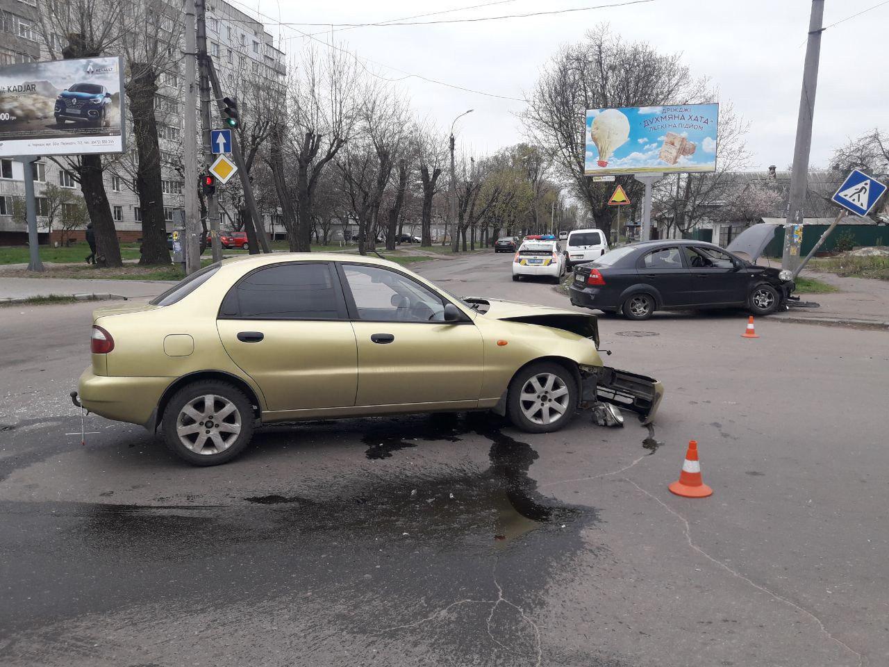 Зіткнення сталось між DAEWOO LANOS та CHEVROLET AVEO. До приїзду поліції з автомобіля CHEVROLET було госпіталізовано потерпілу до Третьої міської лікарні, жінку 1967 р. н., з попереднім діагнозом «забій грудної клітки».