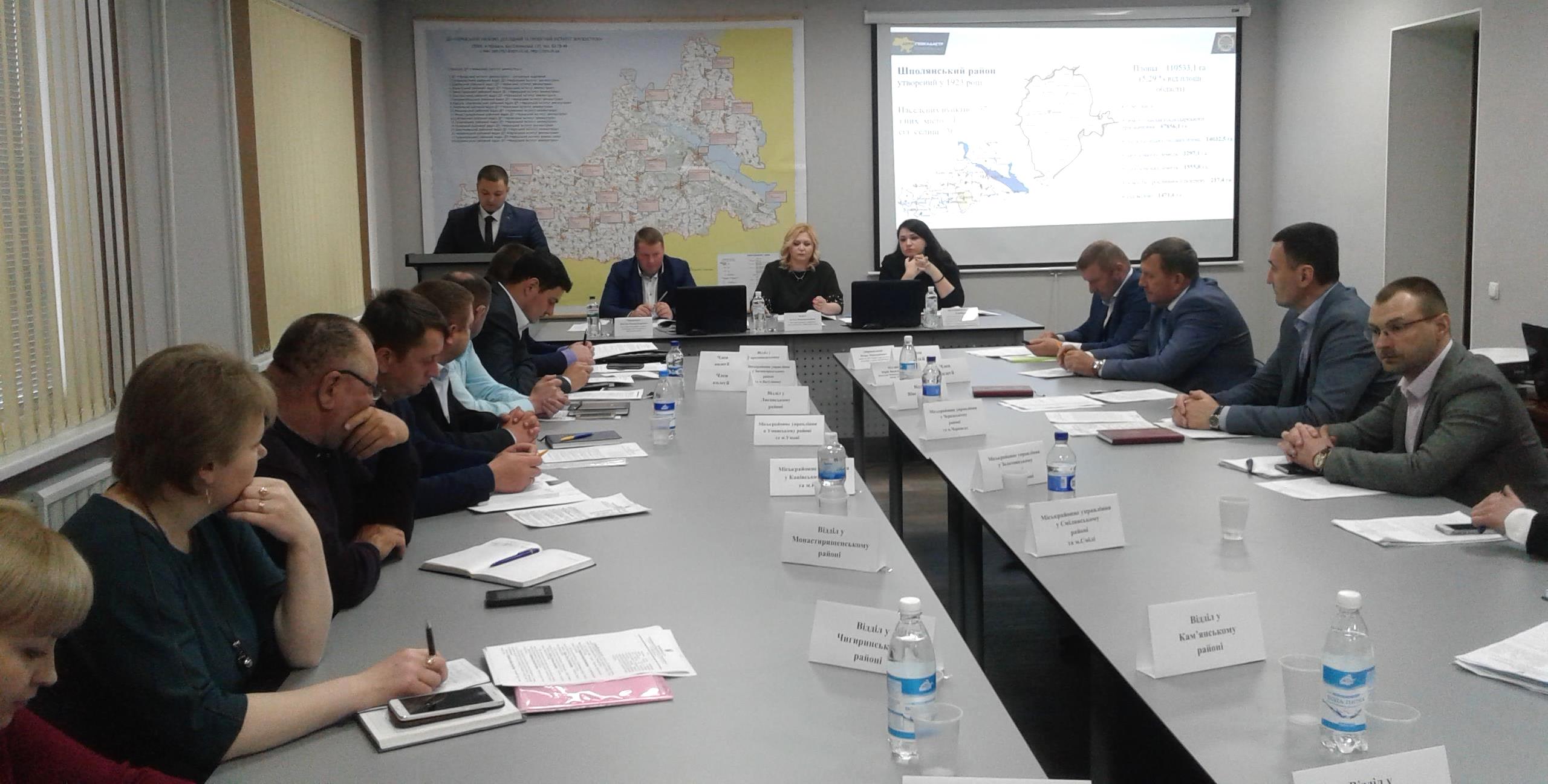 Відповідно до порядку денного проаналізовано роботу відділів у Городищенському й Шполянському районах і загалом Головного управління Держгеокадастру у Черкаській області за 2018 рік, зокрема розглянуто стан виконання плану-графіка продажу прав оренди на земельні ділянки сільськогосподарського призначення державної власності, підготовку та проведення планових заходів державного нагляду (контролю) щодо додержання суб’єктами господарювання вимог законодавства у сфері топографо-геодезичної і картографічної діяльності та ведення інтегрованої автоматизованої системи державного нагляду (контролю), проведення державної реєстрації права власності на об’єкти нерухомого майна та земельні ділянки, інспекторську діяльність, координацію роботи державних підприємств, що належать до сфери управління Держгеокадастру тощо.