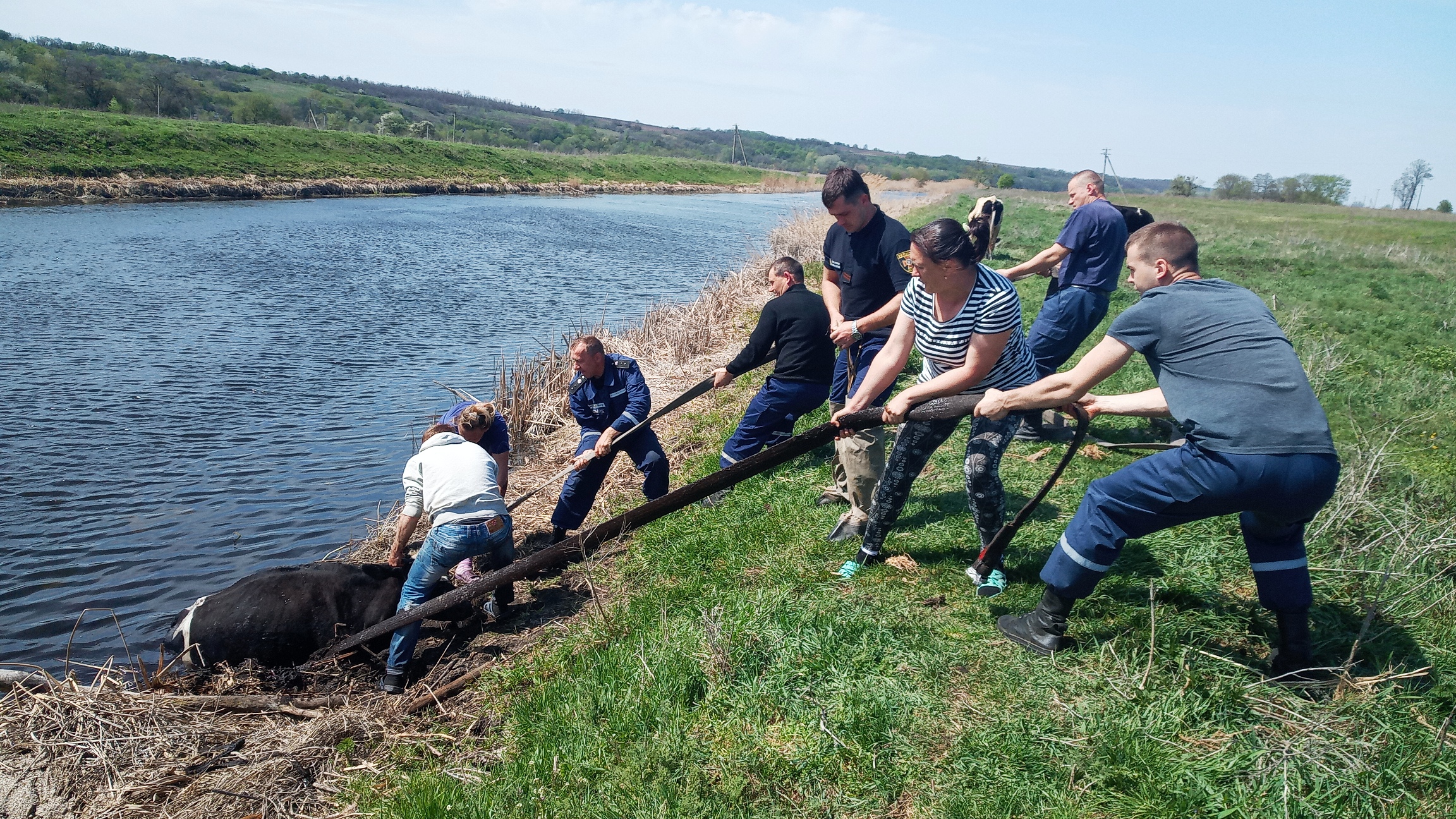 Подія сталася на випасі біля річки Тясмин. Худоба саме підійшла до води, коли під нею обвалилася частина берегової смуги і корова потрапила до річки. Намагаючись самостійно звільнитись, корова з кожним рухом все більше занурювалась у мул.