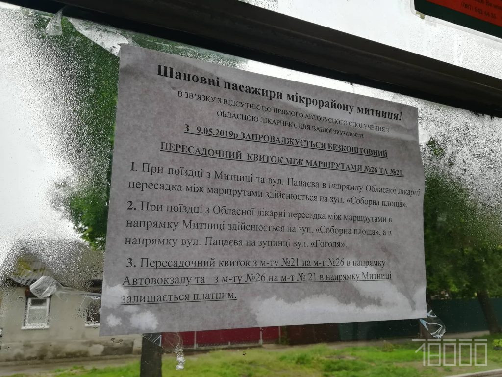 Як ідеться в оголошенні, пересадка стане безкоштовною через відсутність прямого транспортного сполучення між мікрорайоном “Митниця” та Черкаською обласною лікарнею.