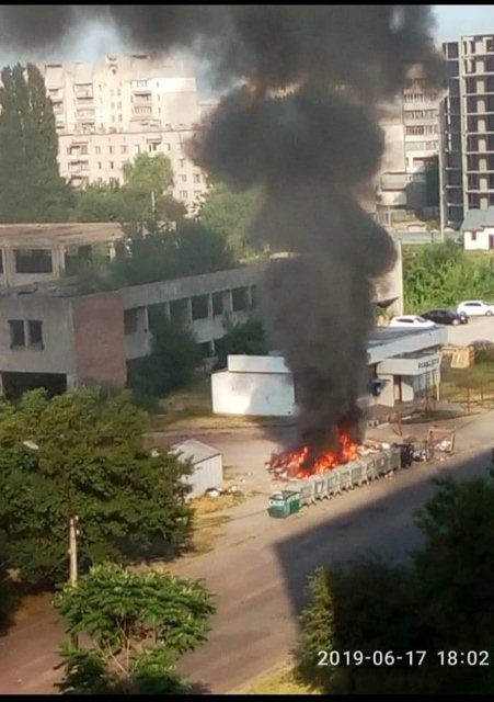 Внаслідок пожежі вогнем знищено сміття на площі 30 кв.м, та пластиковий контейнер для сміття. Причина пожежі встановлюється.