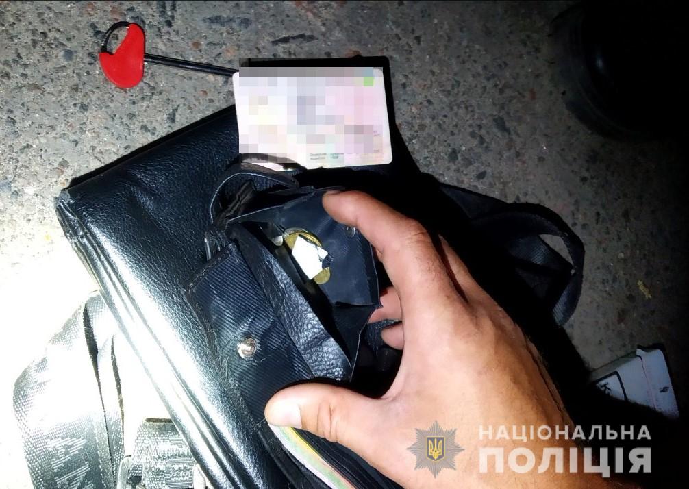 Під час проведення поверхневого огляду в чоловіка виявлено поліетиленовий пакет з речовиною білого кольору та паперовий згорток з висушеною подрібненою речовиною зеленого кольору невідомого походження. Також встановлено особу затриманого. Ним виявився черкасець, 1991 року народження.