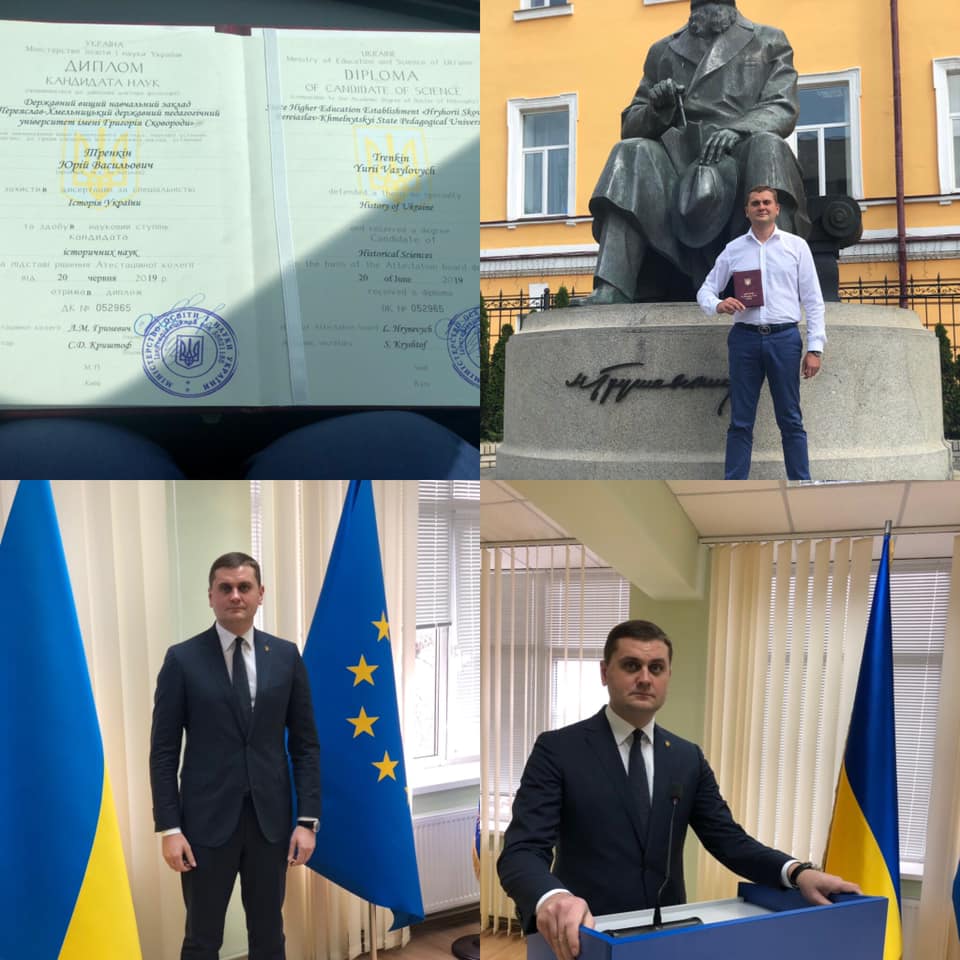 Про це Юрій Васильович повідомив у фейсбуці, додавши фотографії диплома й себе за кафедрою, біля прапорів ЄС і України, біля пам’ятника Михайлові Грушевському.