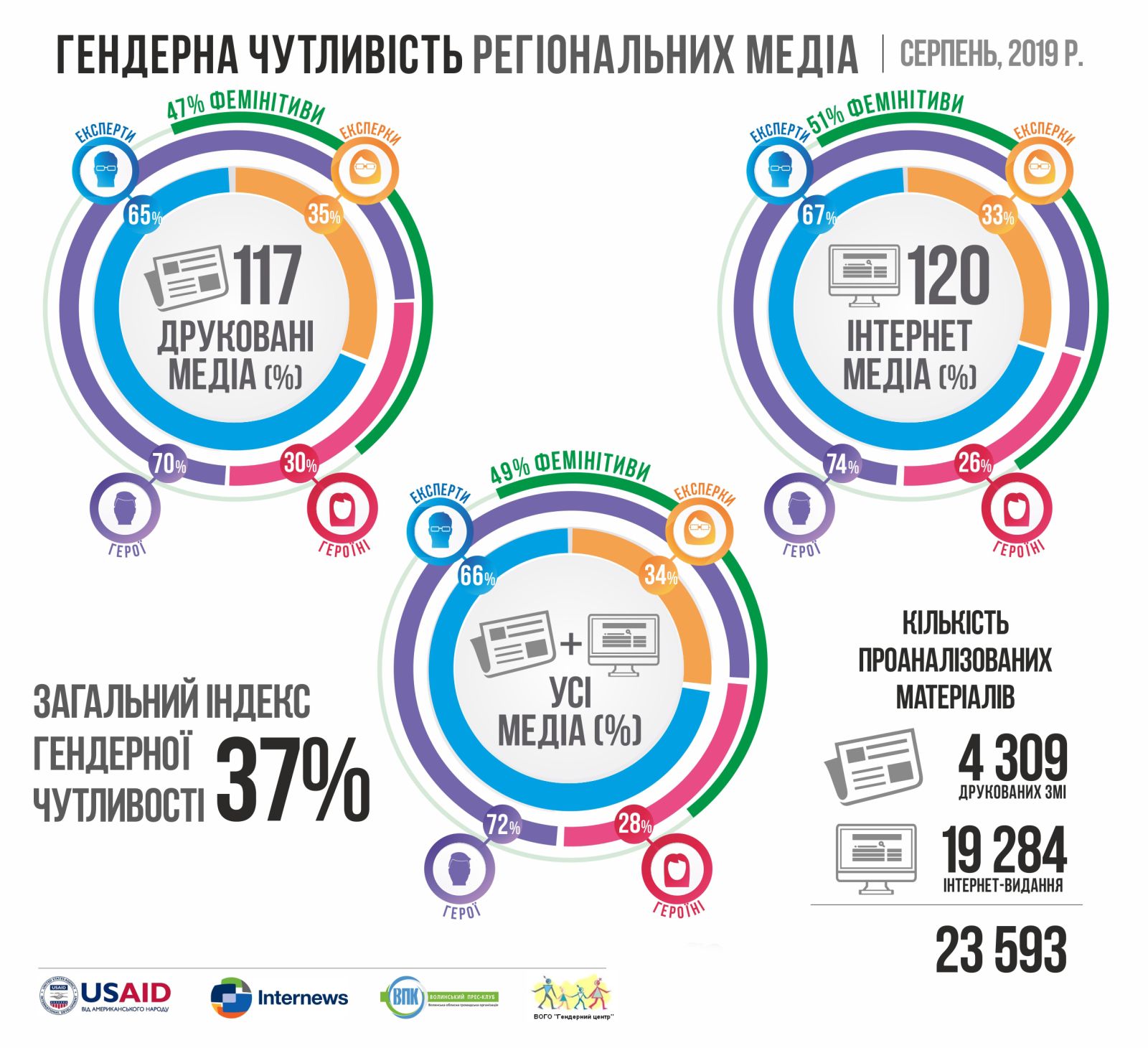 Загалом, за означений період відсоток експерток складає 20% від загальної кількості експерток та експертів, а героїнь – 34% від загальної кількості героїнь та героїв.