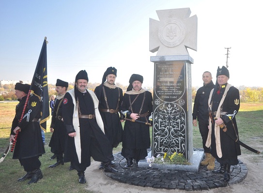 Однострої Чорних Запорожців часів УНР на відкритті підкреслювали те, що боротьба за Волю України точиться в усі часи... На фото крайній справа - нащадок загиблих ОУНівців Мирослав Цимбалко (в однострої), поруч з ним - Олег Собченко
