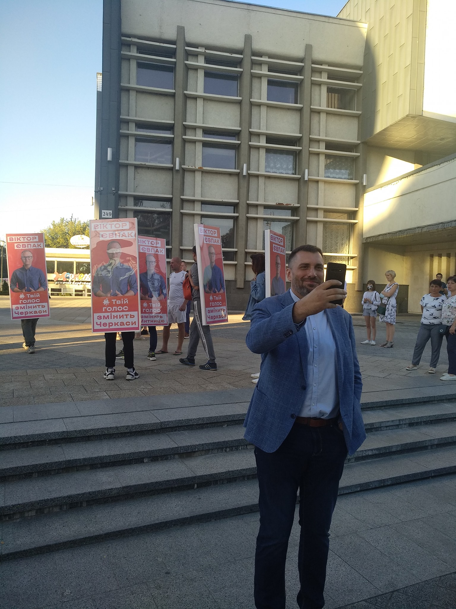 Вуличною агітацією відзначається партія “Наш край”, котра розмістила декілька агітаційних наметів в обласному центрі, партія “За майбутнє”, а також партія “Голос”, яка застосовувала живих рекламних носіїв для банерів із зображенням потенційного кандидата від партії на міського голову Черкас.