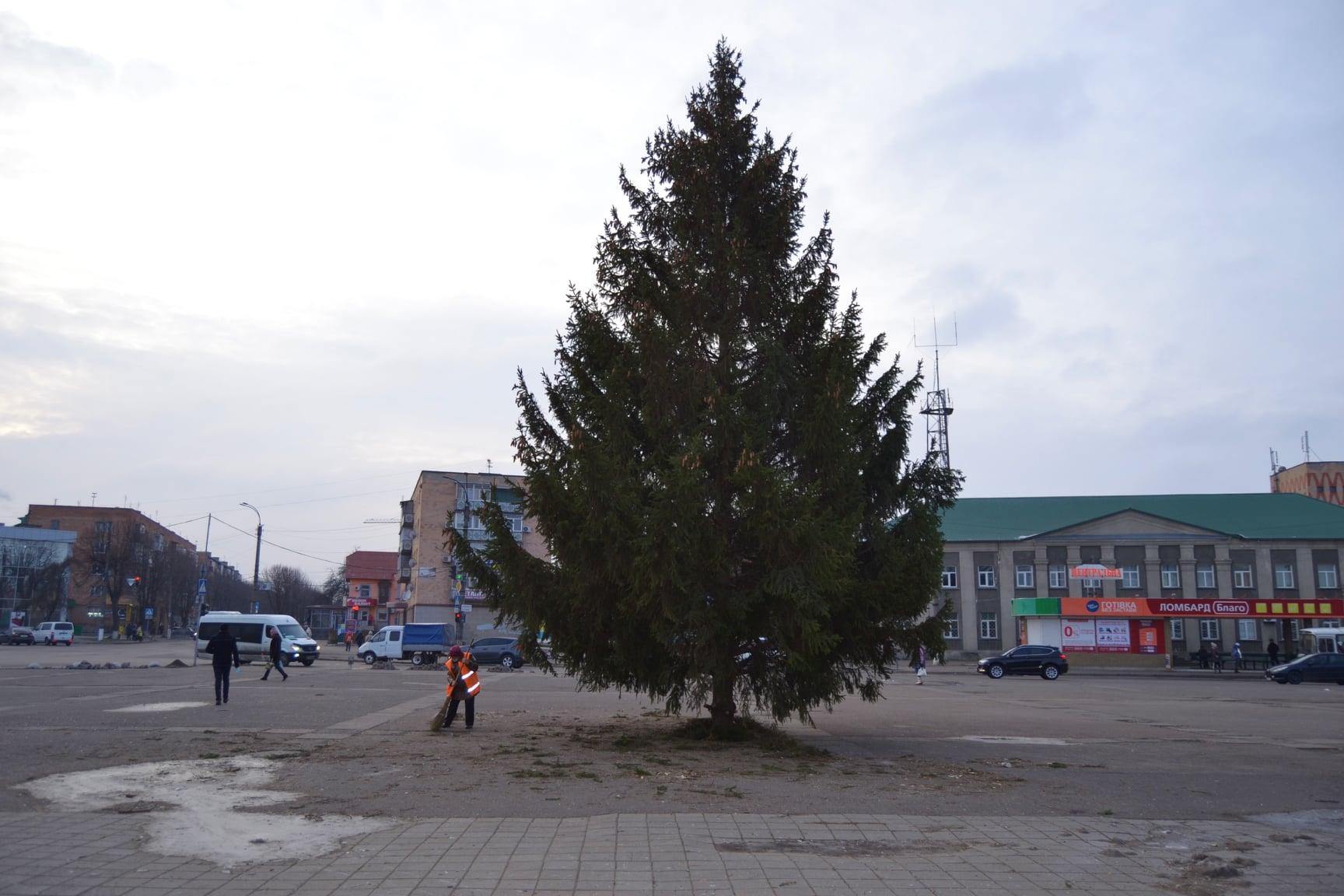 Комунальні служби безкоштовно зрізали зелене дерево і встановили на центральній площі.