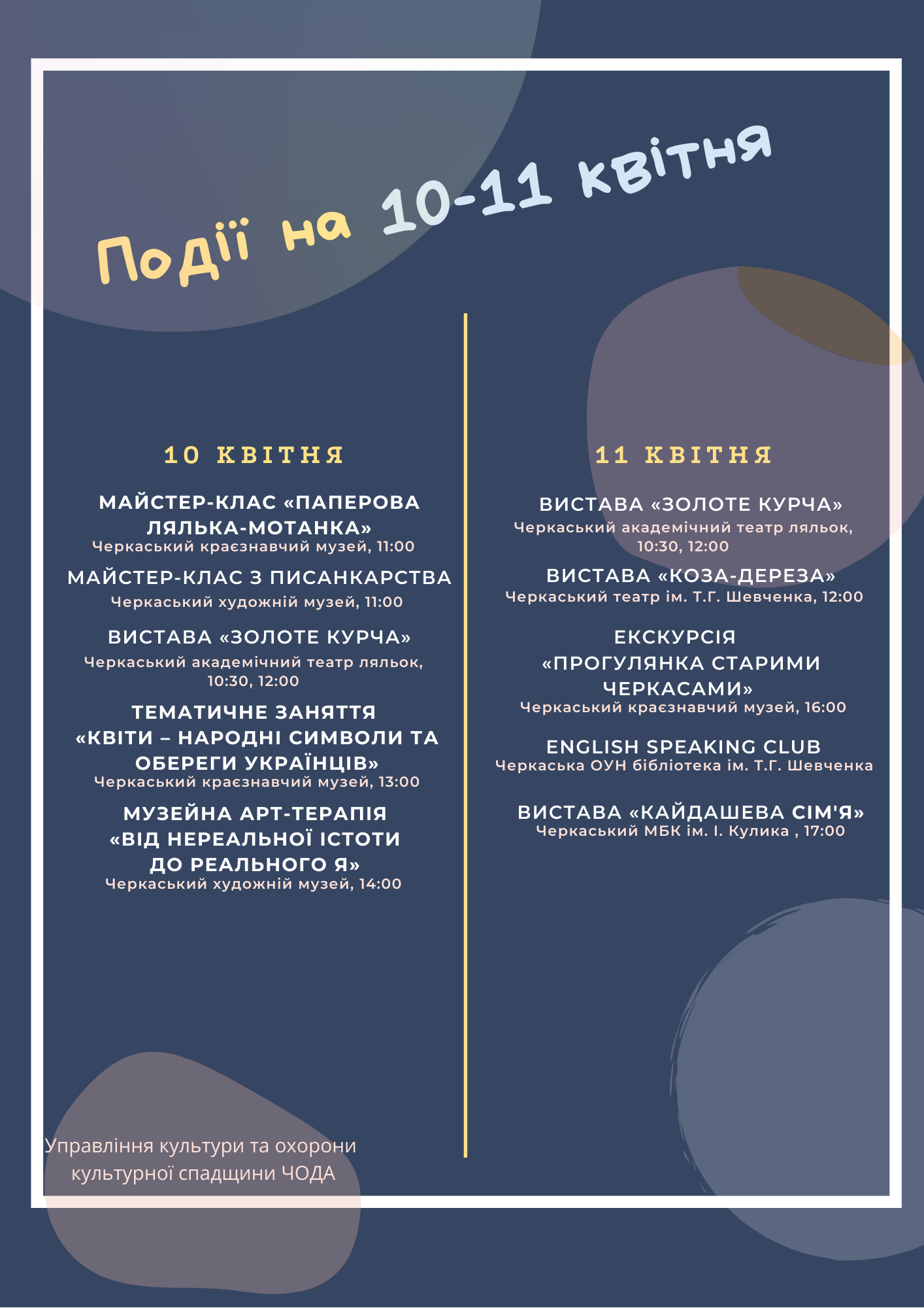 Перелік культурно-мистецьких подій на 10-11 квітня