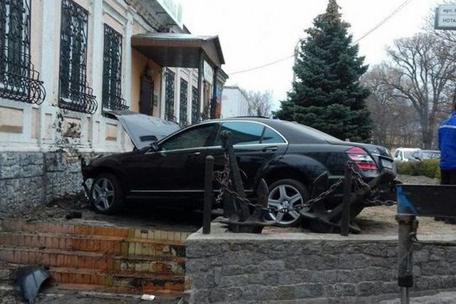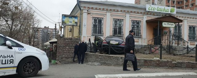 «Чорний "Мерс" унаслідок ДТП "заякорився" у буквальному значенні слова – перелетівши через залізні ланцюги огорожі, врізався у стіну "Еколавки" поруч з рестораном "Баку" і всівся на два морських якоря, які тут у якості декору...» – написав у фейсбуці журналіст Андрій Кравець.