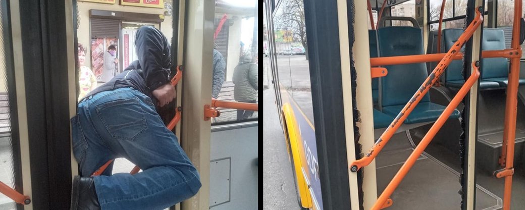 За словами очевидців, пасажири протягом пів години не могли вийти з транспорту: чоловік бив скло і погрожував. Після цього розбив скло на вхідних дверях тролейбуса і втік.