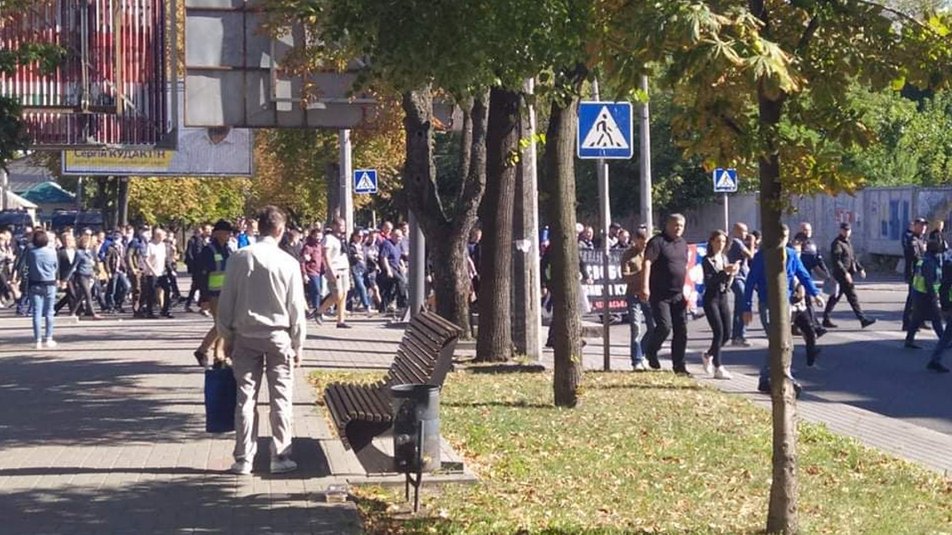 У Черкасах відбувся марш ветеранів та футбольних прихильників на підтримку ув'язнених членів черкаського Нацкорпусу Дмитра Кухарчука та Олега Довбиша, які перебувають під вартою.