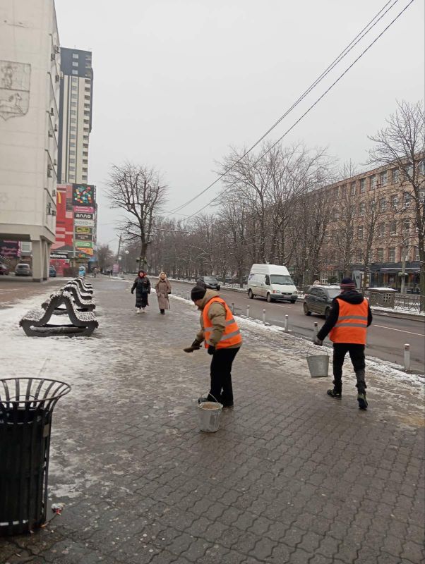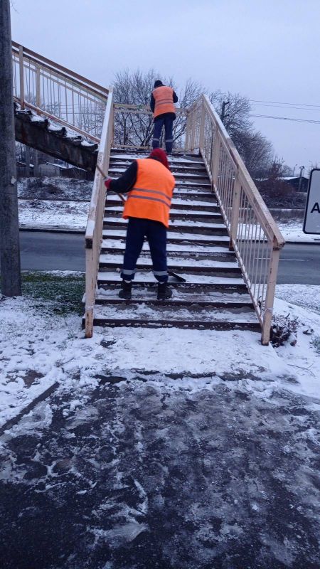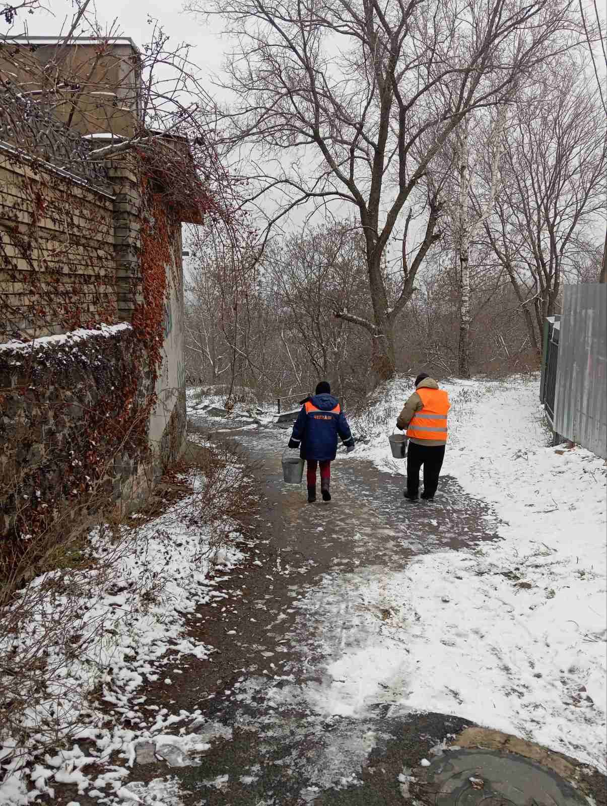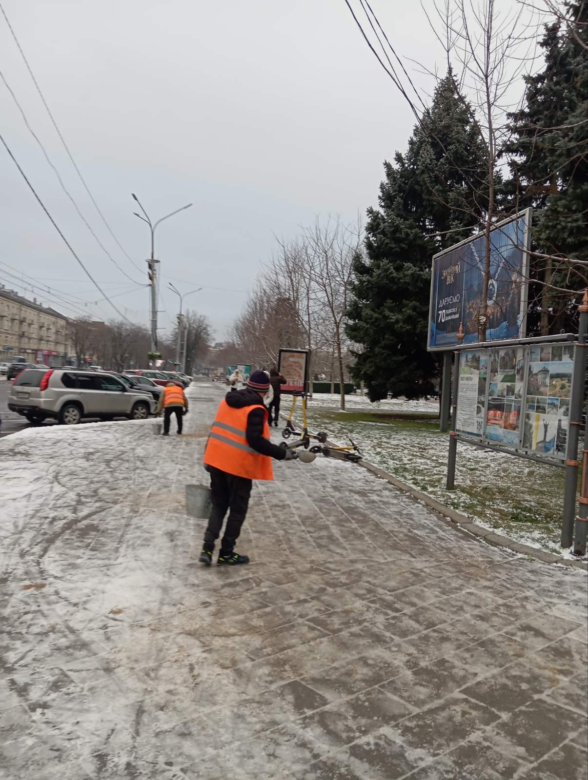 З метою забезпечення безпечного пересування мешканців міста виконували підсипку піском найбільш слизьких ділянок — спусків, сходів і тротуарів у різних районах міста.