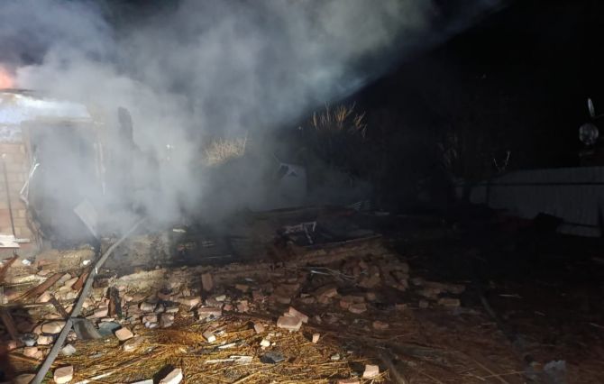 Однак у Черкаському районі внаслідок падіння ворожого БпЛА виникла пожежа. Вогнем знищено житловий будинок. Вибуховою хвилею повибивало вікна ще в кількох сусідніх, а також літній кухні.