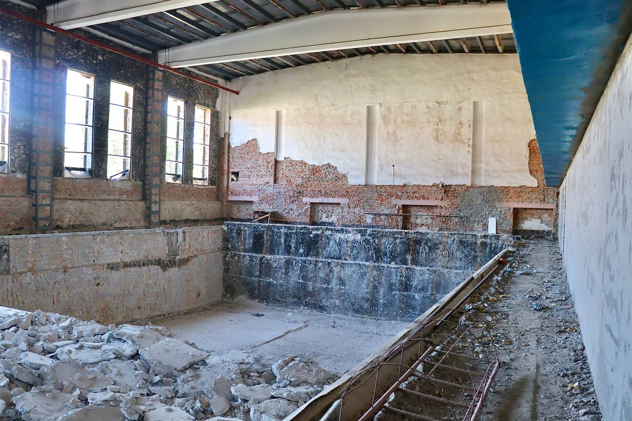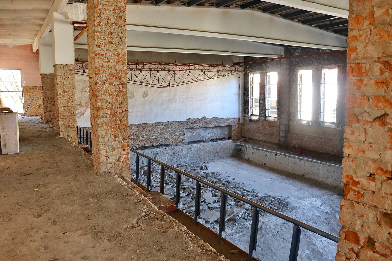 Наразі в приміщенні завершено частину фасадів, облаштовано дах та його утеплення. Але всередині — голі стіни.