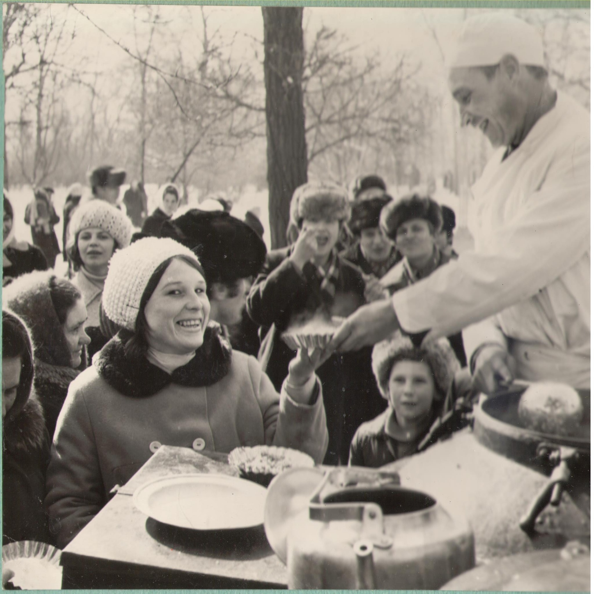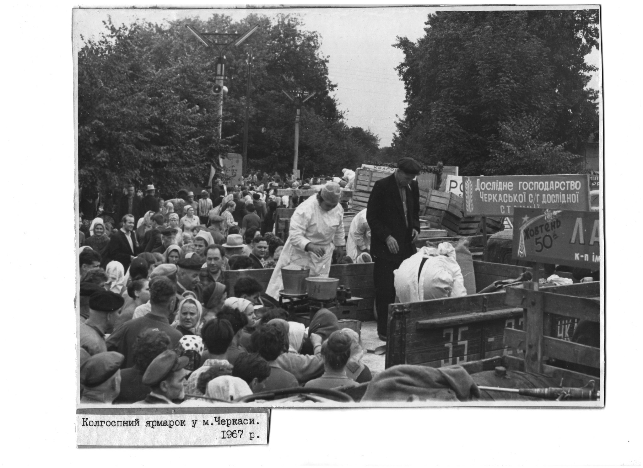 А ще - люди. Перехожі, які поспішають у своїх справах і не здогадуються, що їх фотографують, робітники-монтажники зосереджено роздивляються схему обладнання, яке вони мають встановити на “Хімреактиві”, юрба покупців біля колгоспних вантажівок на осінньому ярмарку, черги з читачів в абонементному відділі обласної бібліотеки, ще за старою адресою, масові гуляння черкасців на святі проводів зими в парку “Ювілейний” і там само - демонстрація мод на сцені літнього кінотеатру.